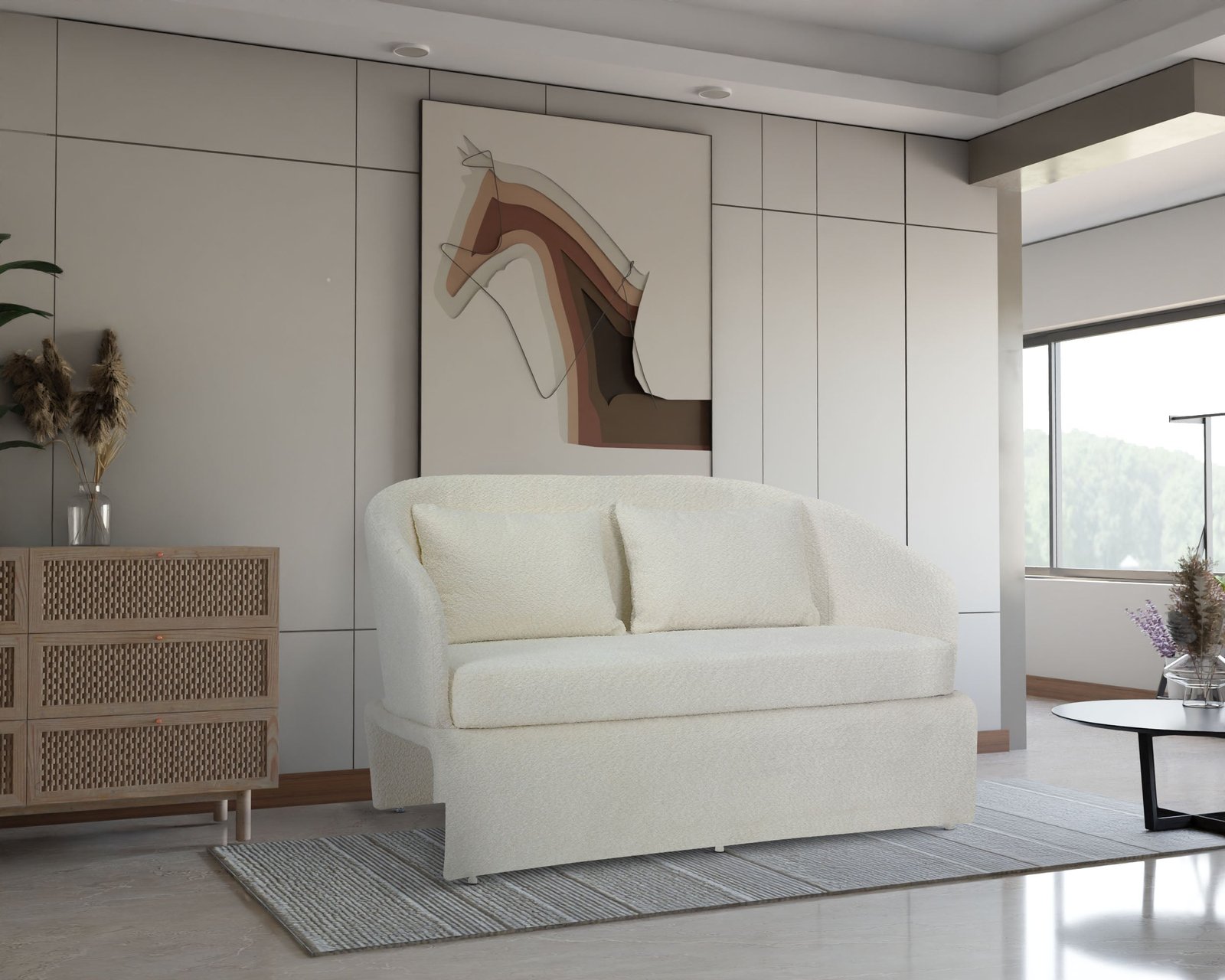 Teddy Boucle Fabric Cream Jaquetta 2 Seat Accent Chair