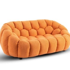 The Teddy Boucle Fabric Orange Atrani 2 Seat Accent Chair is a fantastic contemporary piece, a great addition to your living room arrangement. Upholstered in inviting curly teddy boucle fabric in striking orange, this 2 seat chair offers a winning combination of functionality, comfort, and style.