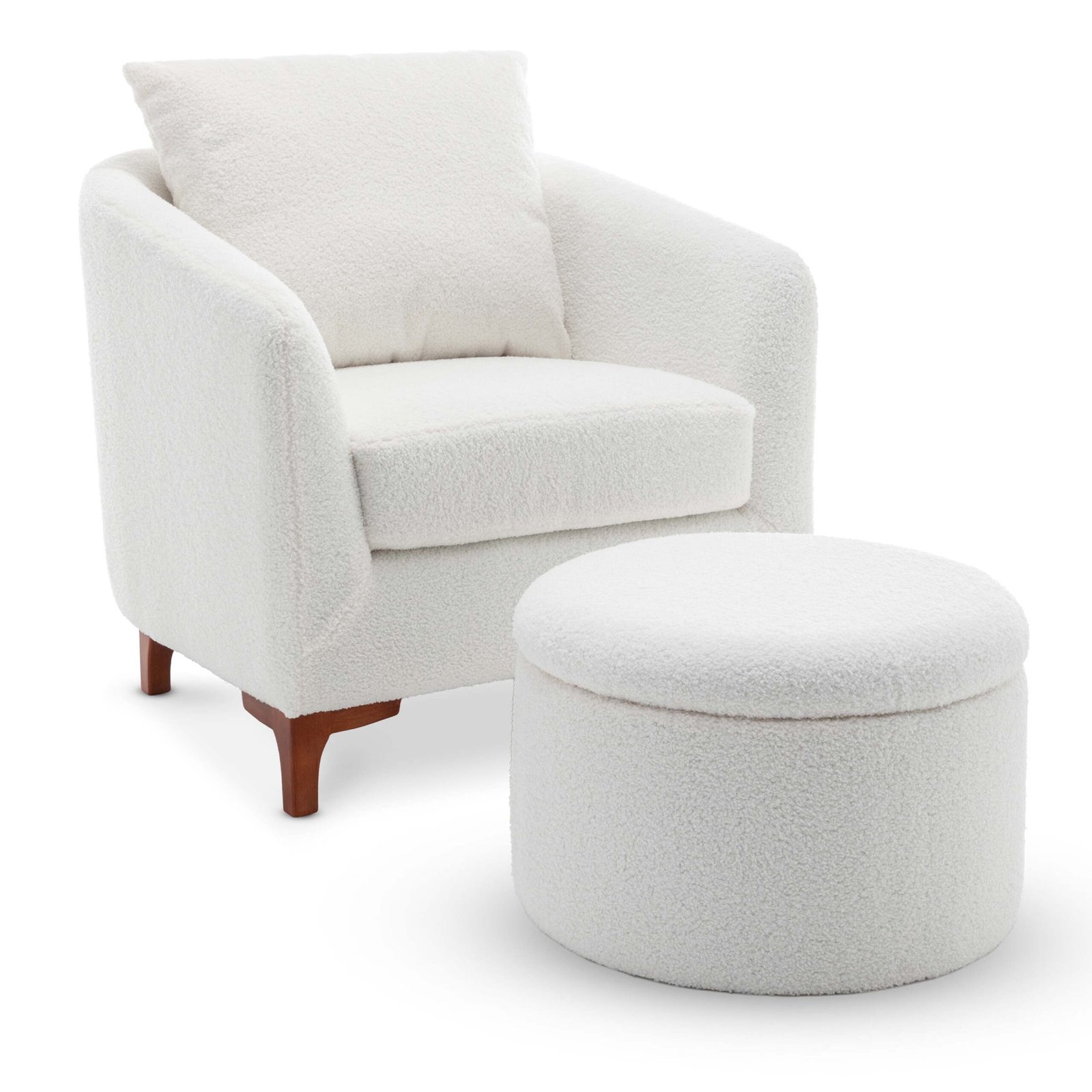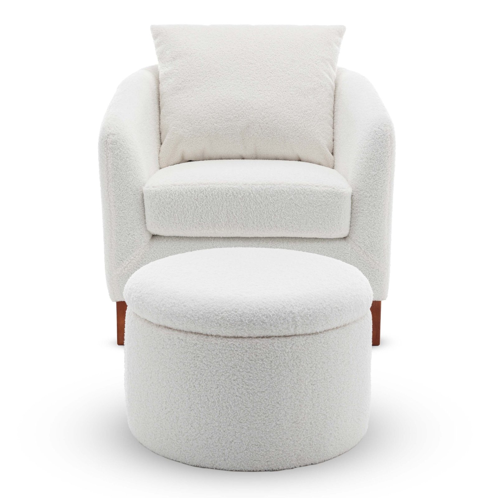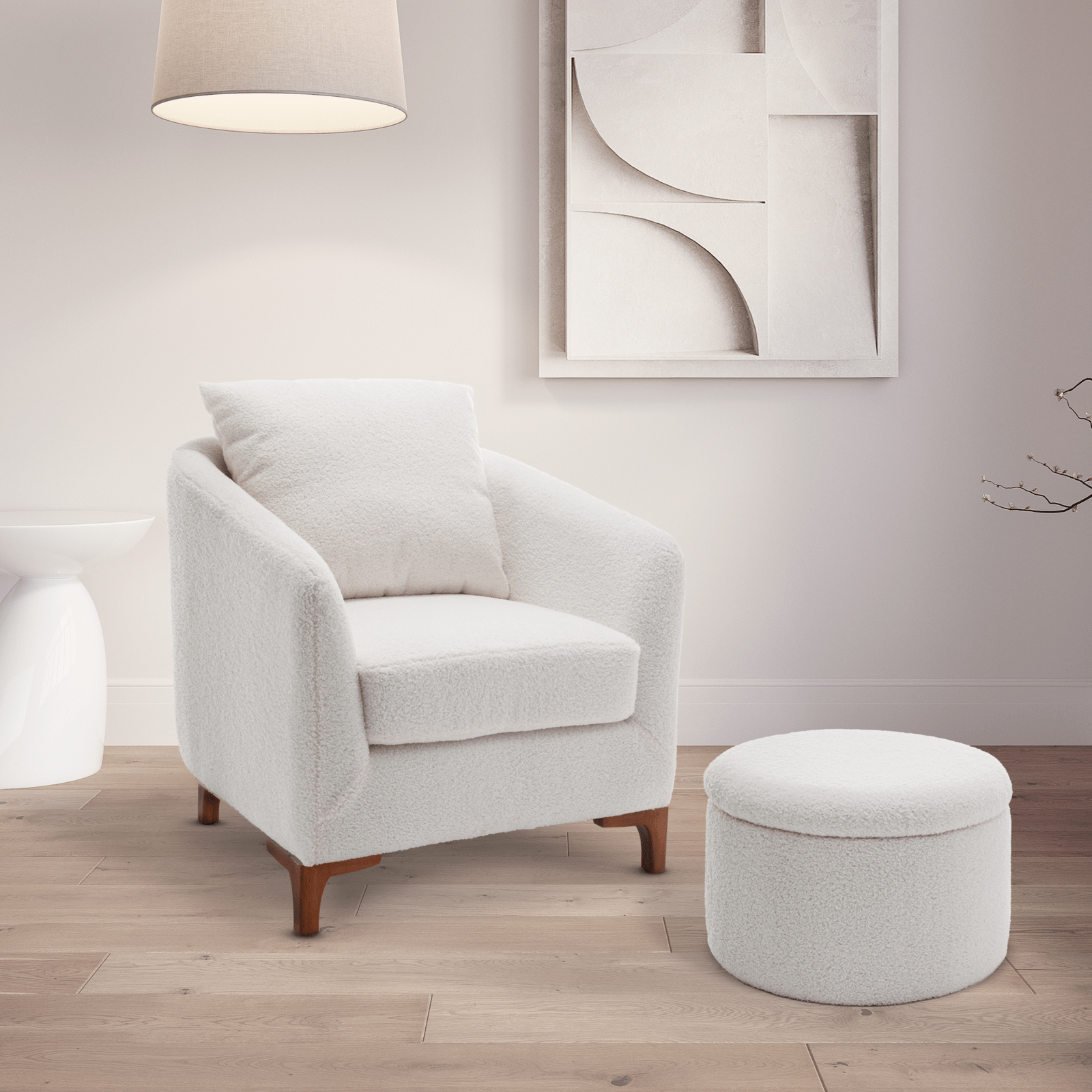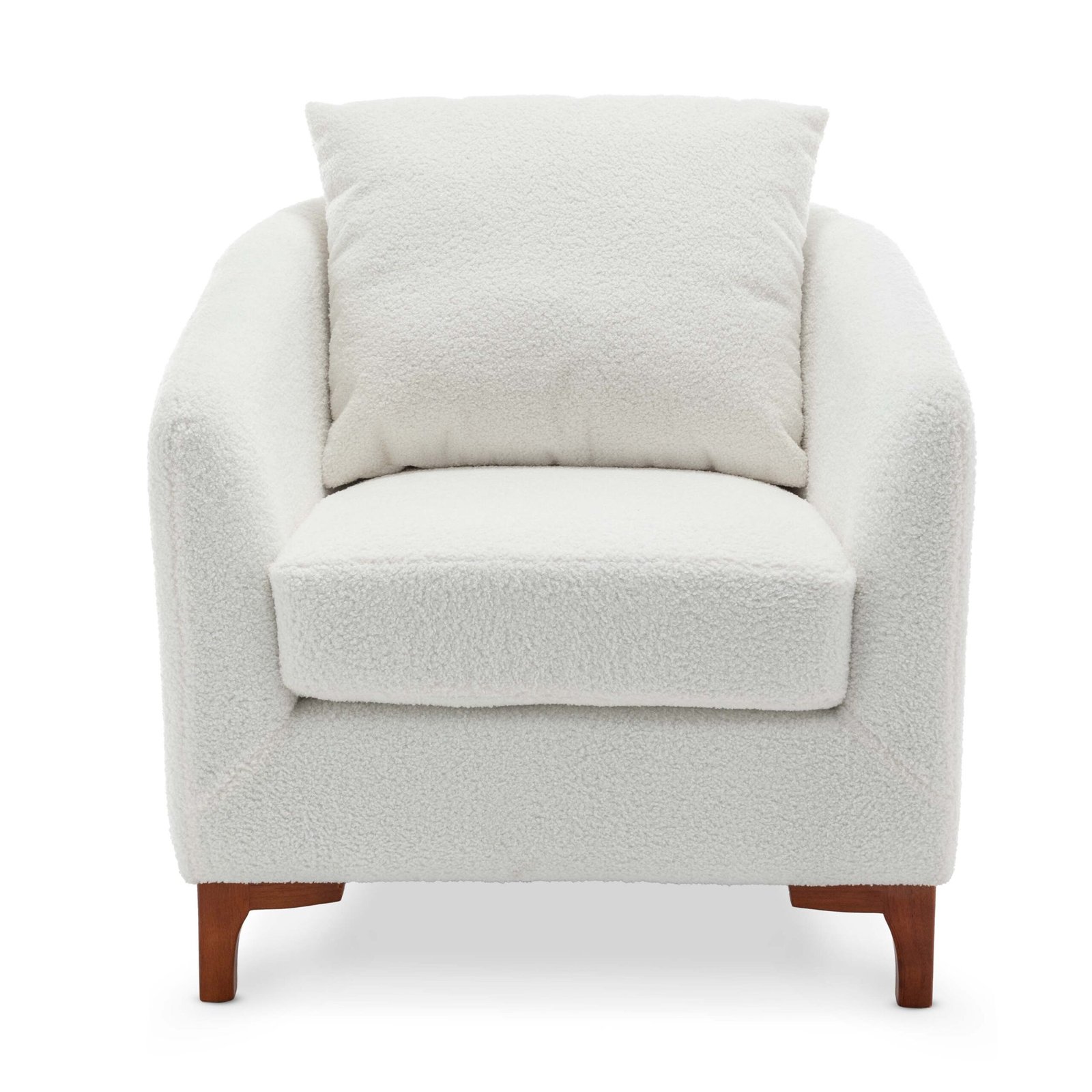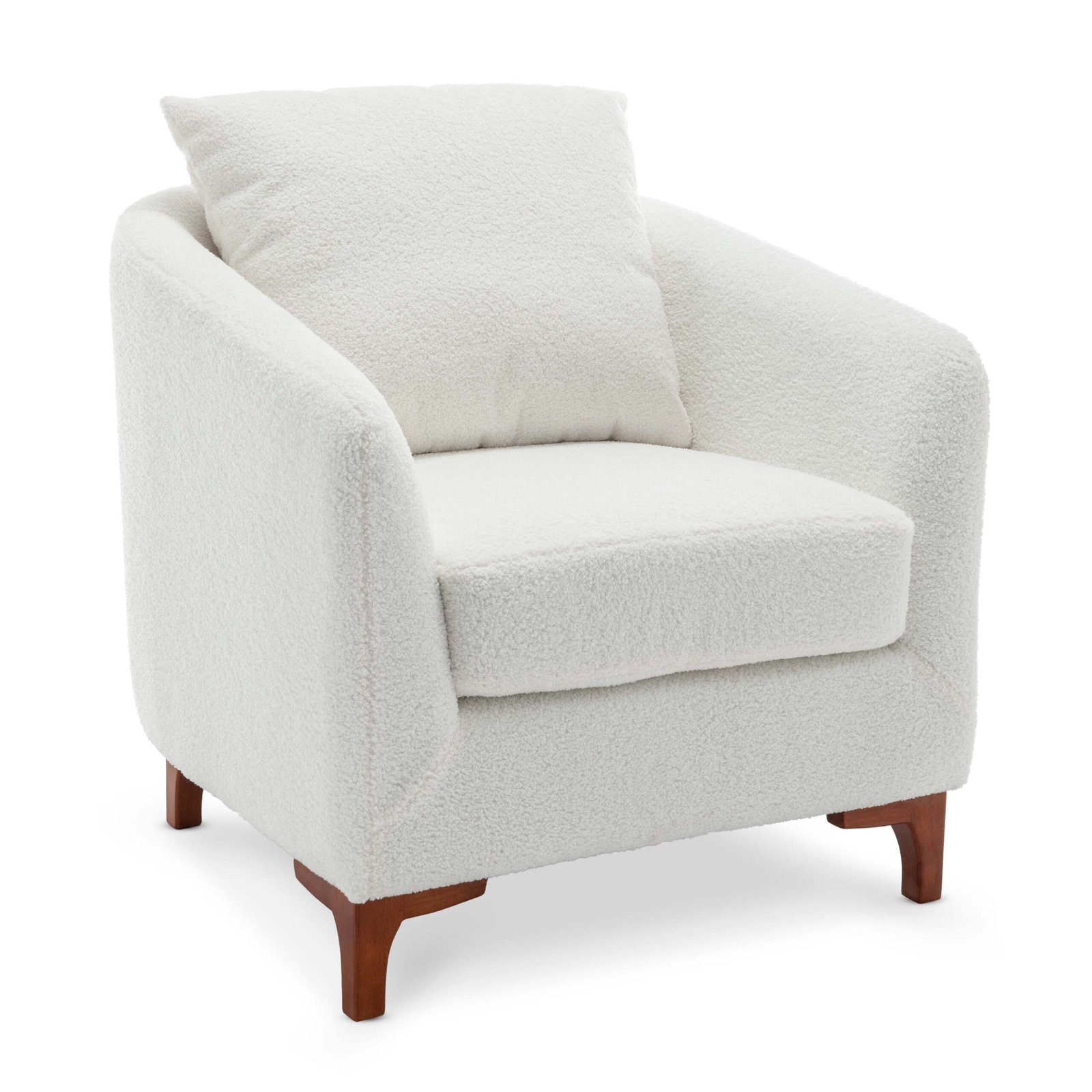 This Angela Tub Chair comes upholstered in a curly, cosy teddy boucle fabric. The white colour is the perfect accent to add to your living room or bedroom to brighten up the pallette. White, being a neutral colour, is an easy fit to add to introduce to most spaces.