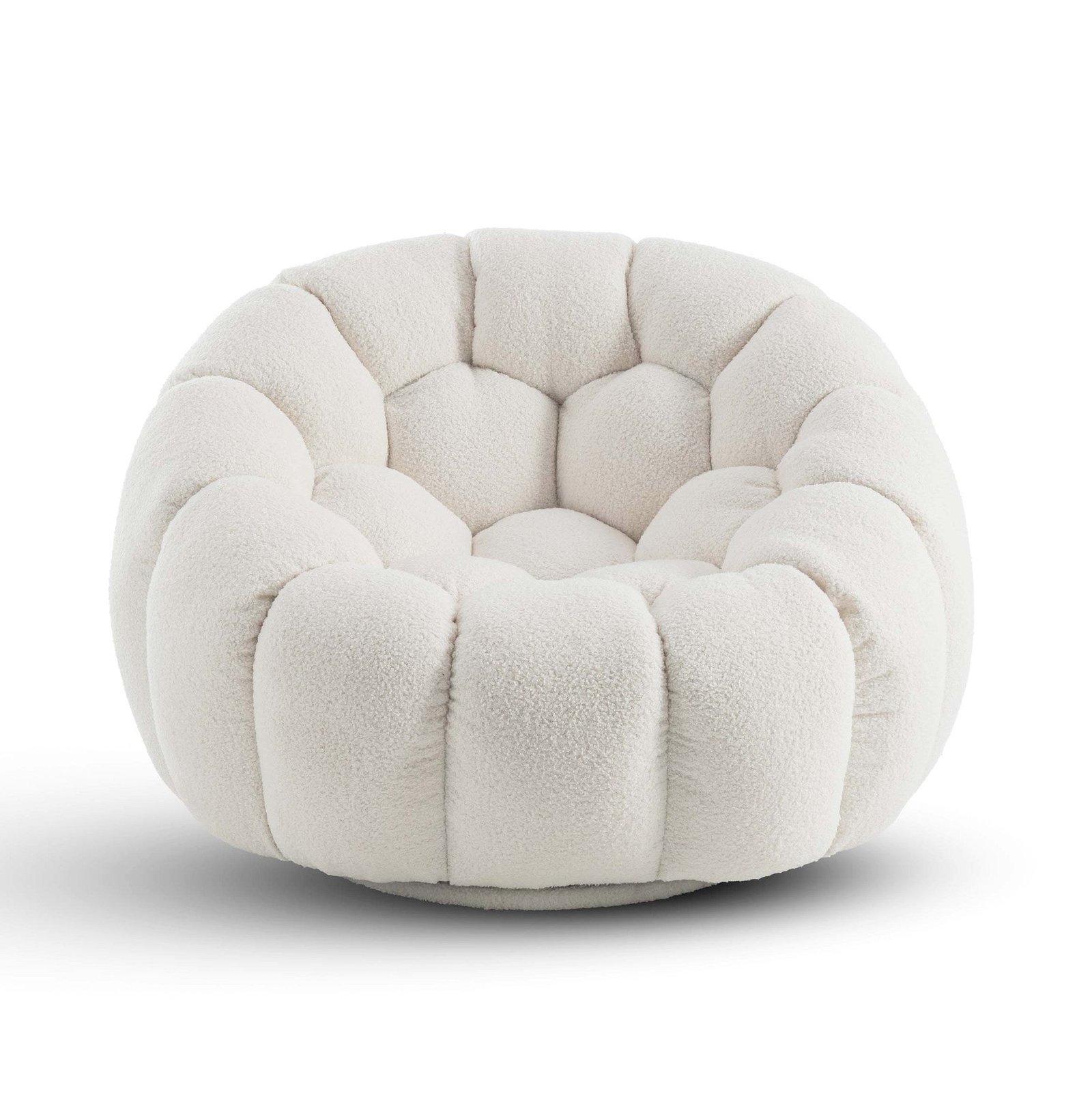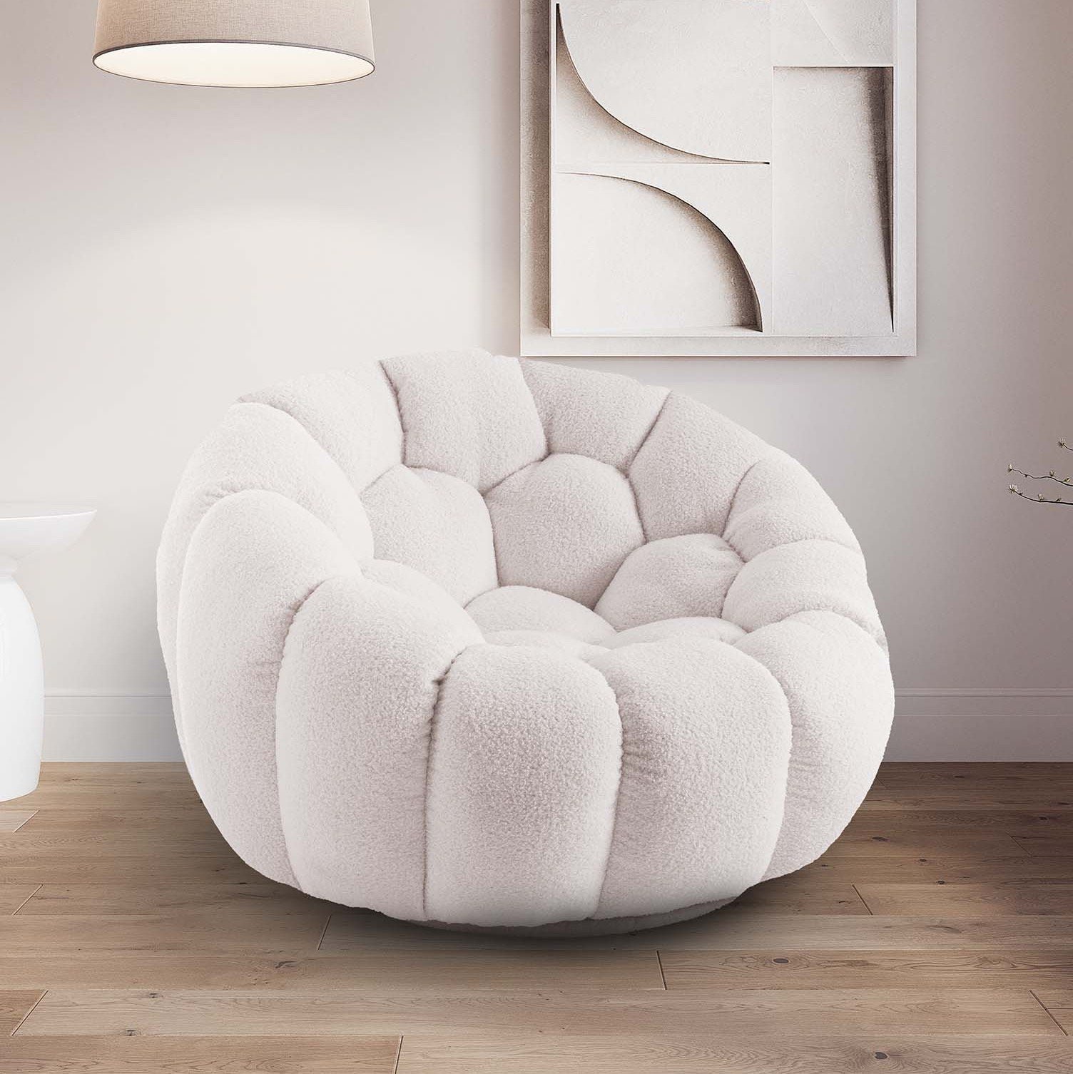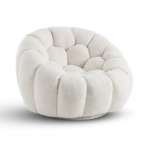 Teddy Boucle Fabric White Atrani Swivel Accent Chair